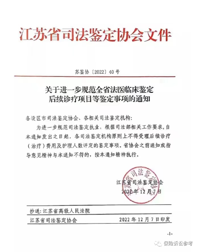 一、江苏省司法鉴定协会关于进一步规范全省法医临床鉴定后续诊疗项目等鉴定事项的通知(2022)